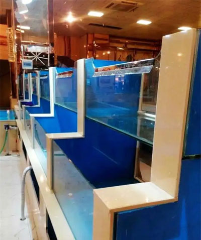 海鲜池又名大型海鲜养殖鱼缸,是鱼虾贝类等各类海鲜暂养池